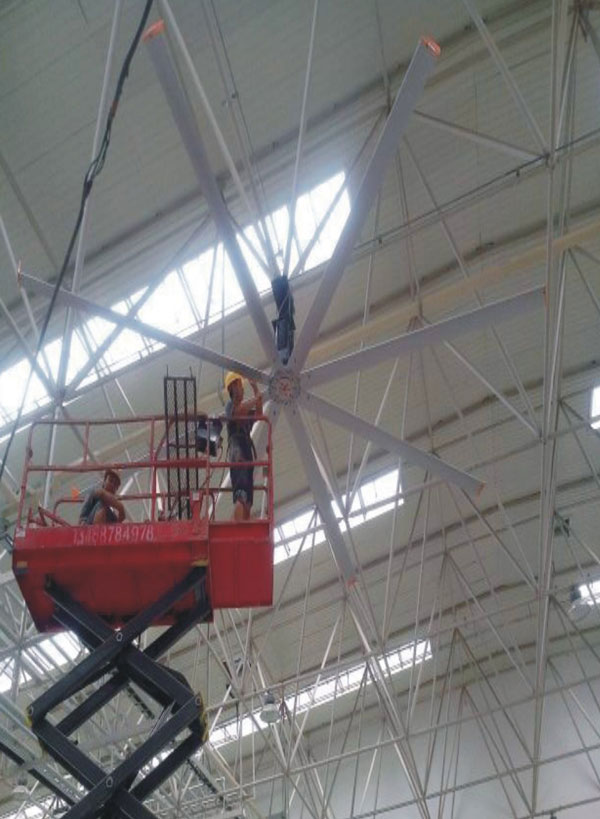 我公司生產(chǎn)的大型工業(yè)吊扇直接懸掛在廠房屋梁下,風(fēng)力柔和,能加快車間空氣流通,有效降低車間內(nèi)溫度,改善車間空氣環(huán)境質(zhì)量,有利于員工的身體健康。